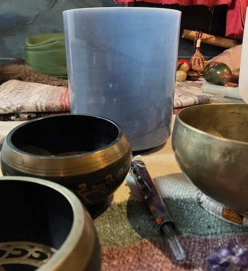 Amongst the dozens of instruments that I use in sound meditation and healing, there’s one in particular that engages my mind, body, and spirit equally. I am a recovering academic since discovering that I can physically experience sound in my body, and that has led me to a more intuitive sound practice. Listening with my body and not just my ears and mind has opened up new and exciting experiences for me that were not taught in graduate school! This blog is about the meeting of experience and intellect. it is about my magical Egyptian blue alchemy crystal singing bowl and modulated to help sound bath practitioners, sound healers, and those interested in hearing more deeply into their instruments. And so, I’d like to take you on the journey of discovery that I’ve travelled to unlock some of its secrets.